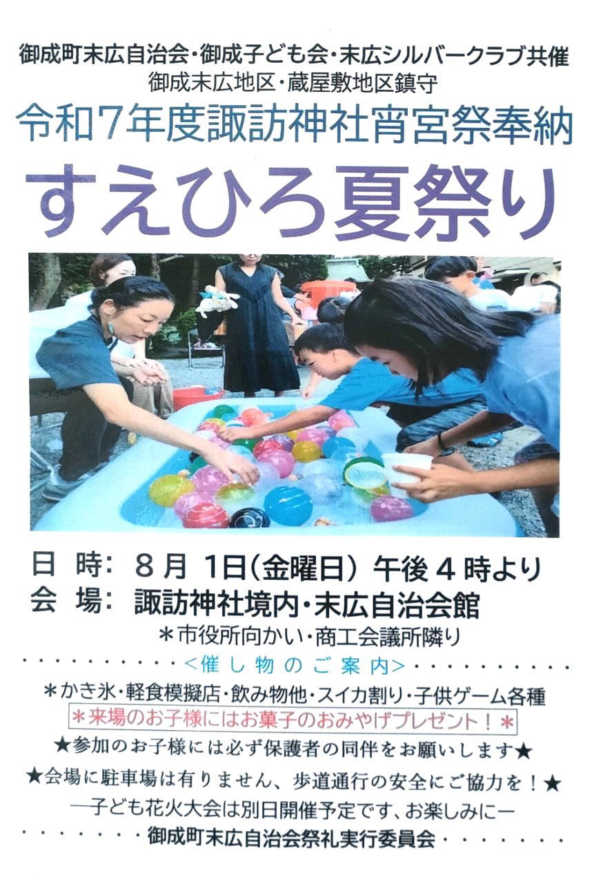 8月1日:御成町諏訪神社宵宮祭のお知らせ