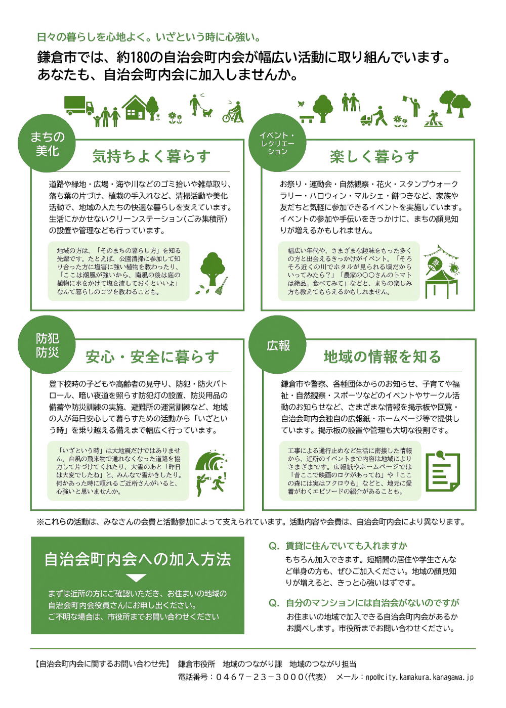 自治体からの行政情報や身近な生活情報の伝達、安全安心な地域作り、住民相互の助け合い、支え合いを自治会活動として取り組み隣近所づくりを大きな役割として取り組んでいます。毎日の生活の中で必要な情報(ごみの収集方法や、地元のイベント行事等)身近な生活情報の伝達などを自治会活動として取り組み、自治会報"末廣"やホームページ、回覧を通じて各家庭に届けています。災害への防災の取り組み(防災活動、防災訓練、自主防災組織参加)や自主防災パトロールなど、助け合う近所づくりを目指しています。