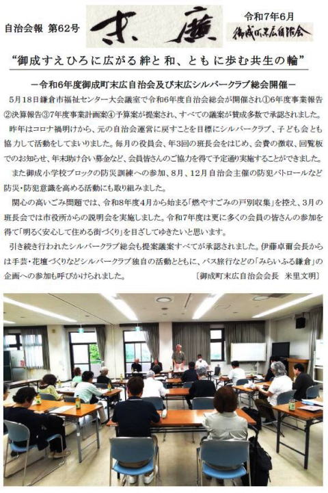 TOP >広報紙「末廣」 【広報紙最新版とバックナンバー】 ※クリックするとPDFで閲覧できます 2025年12月63号 2025年6月62号 2024年12月61号 2024年6月60号 New.2023年12月 59号 2023年6月 58号 2022年(令和5年) ・・・当サイトver1.5がUPされました。前回のバージョンより閲覧しやすくなっています。スマートフォン・タブレット対応です。 制作:Interpress.Japan